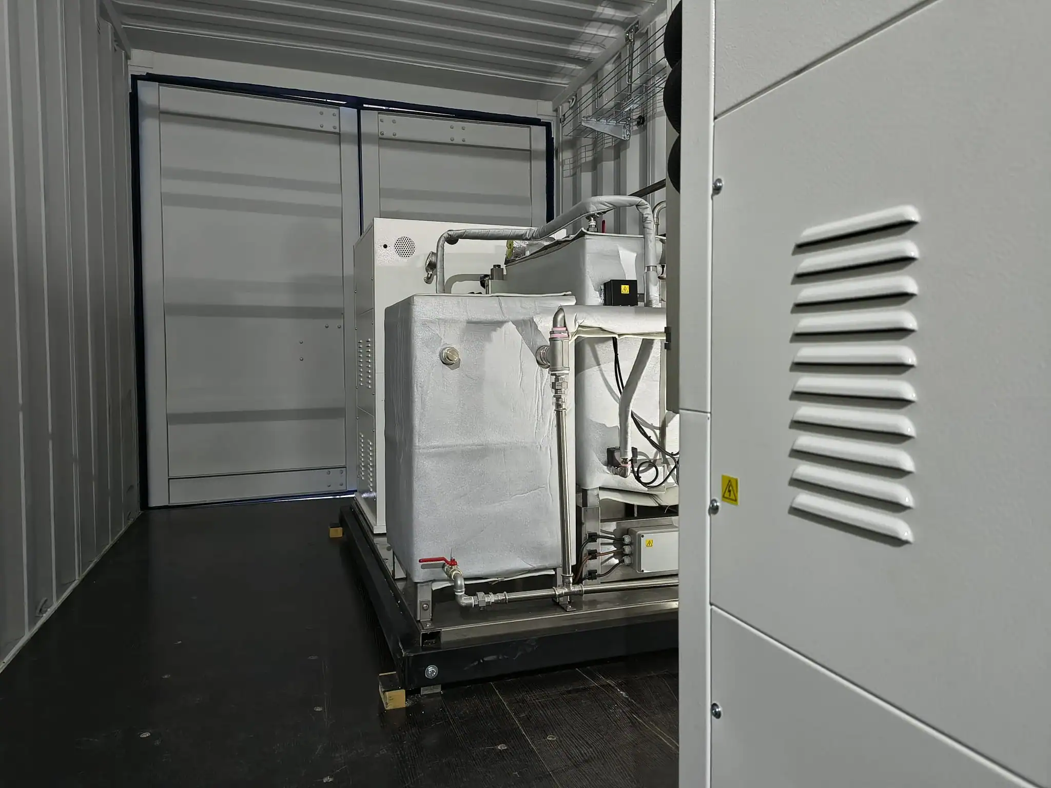 Le conteneur, avec le système entièrement testé, a été déplacé vers l’usine du client et placé à l’extérieur du bâtiment, résolvant ainsi la contrainte de l’espace intérieur.